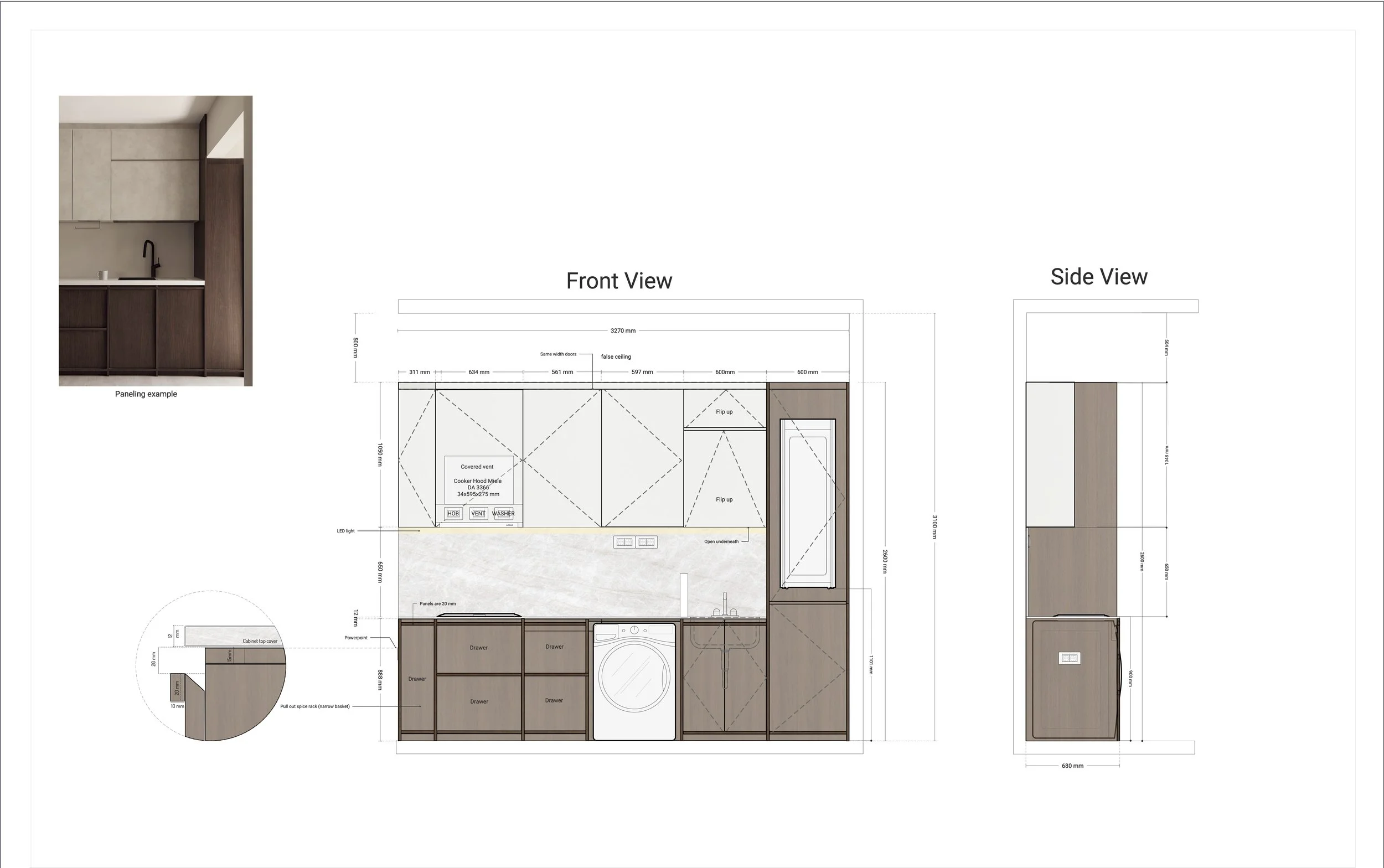 The kitchen highlights both function and elegance, featuring modular and highly practical interior carpentry. Intelligently planned storage, concealed compartments, and adaptable configurations support everyday efficiency without compromising the home’s clean, organic aesthetic.